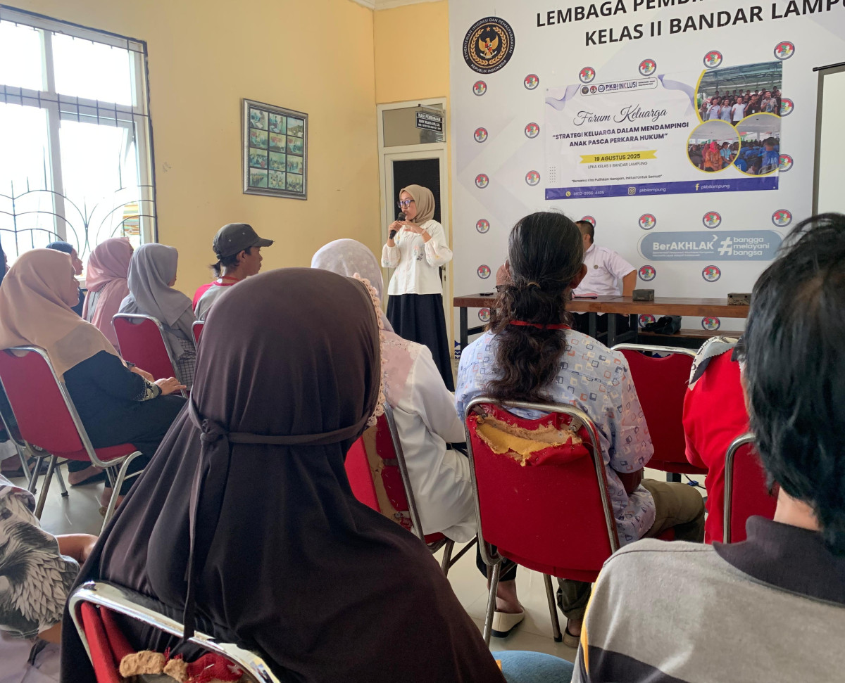 Bandar Lampung – Momen bahagia mewarnai pelaksanaan forum Keluarga yang diselenggarakan oleh Perkumpulan Keluarga Berencana Indonesia (PKBI) Daerah Lampung di Lembaga Pembinaan Khusus Anak (LPKA) Kelas II A Bandar Lampung, Selasa (19/8).